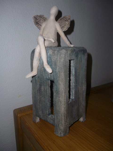 Anděl na keramickém kvádru, 26 cm