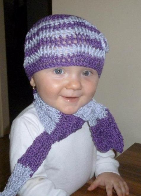 Čepička se šálou - FIALOVOSMETANOVÁ