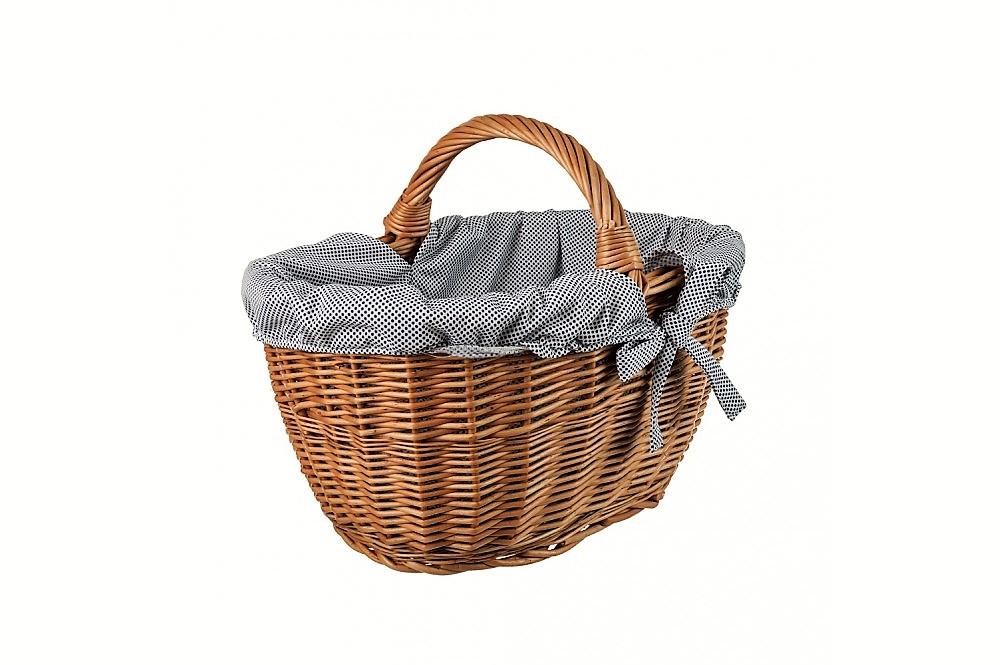 Proutěný koš na nákupy s puntíkovanou látkou