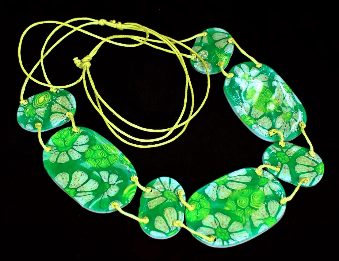 – dvě velikosti oválů se světle zelenými květy na světle zelených šňůrkách